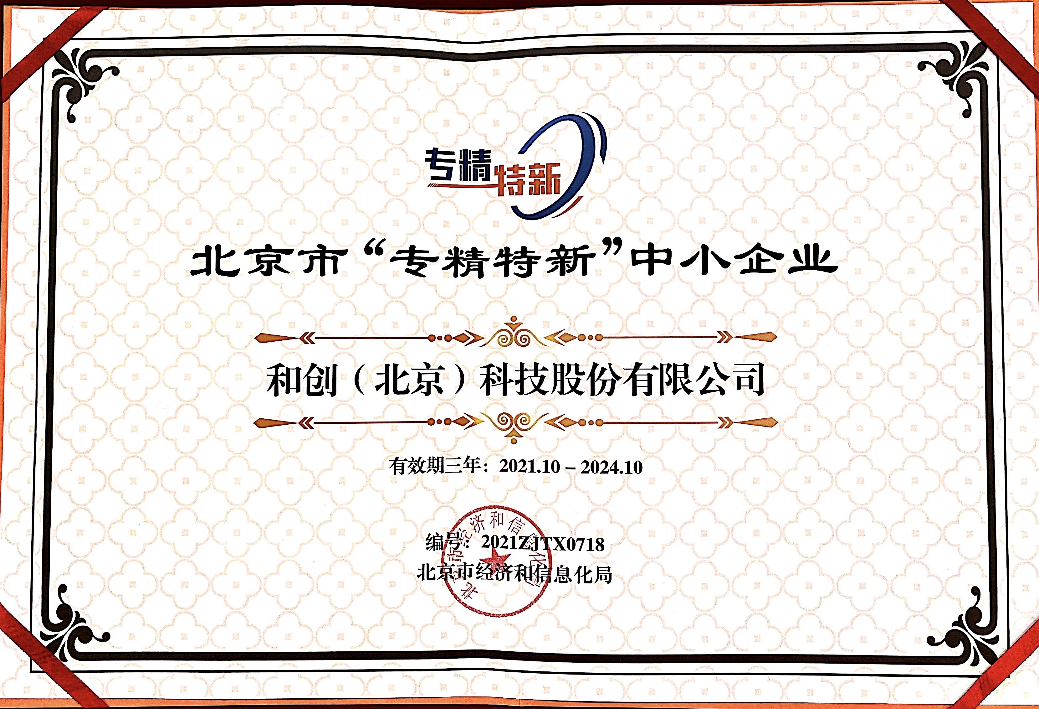 和創(chuàng)科技:被認(rèn)定為北京市“專精特新”中小企業(yè)