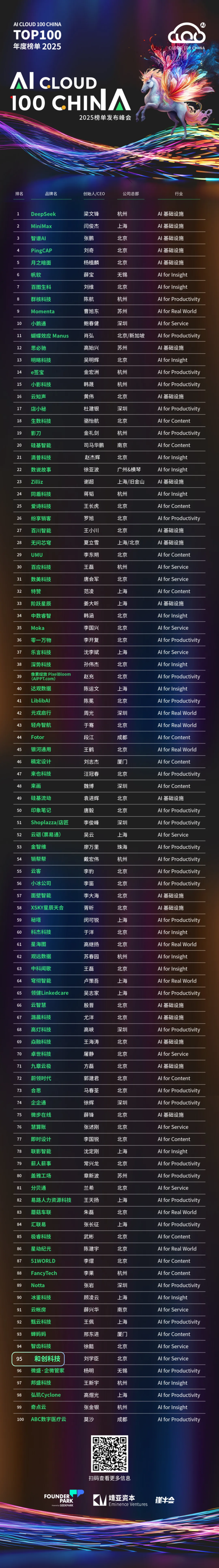 紅圈新聞?|?2025?AI?Cloud?100?China?榜單揭曉:和創科技三度登榜!