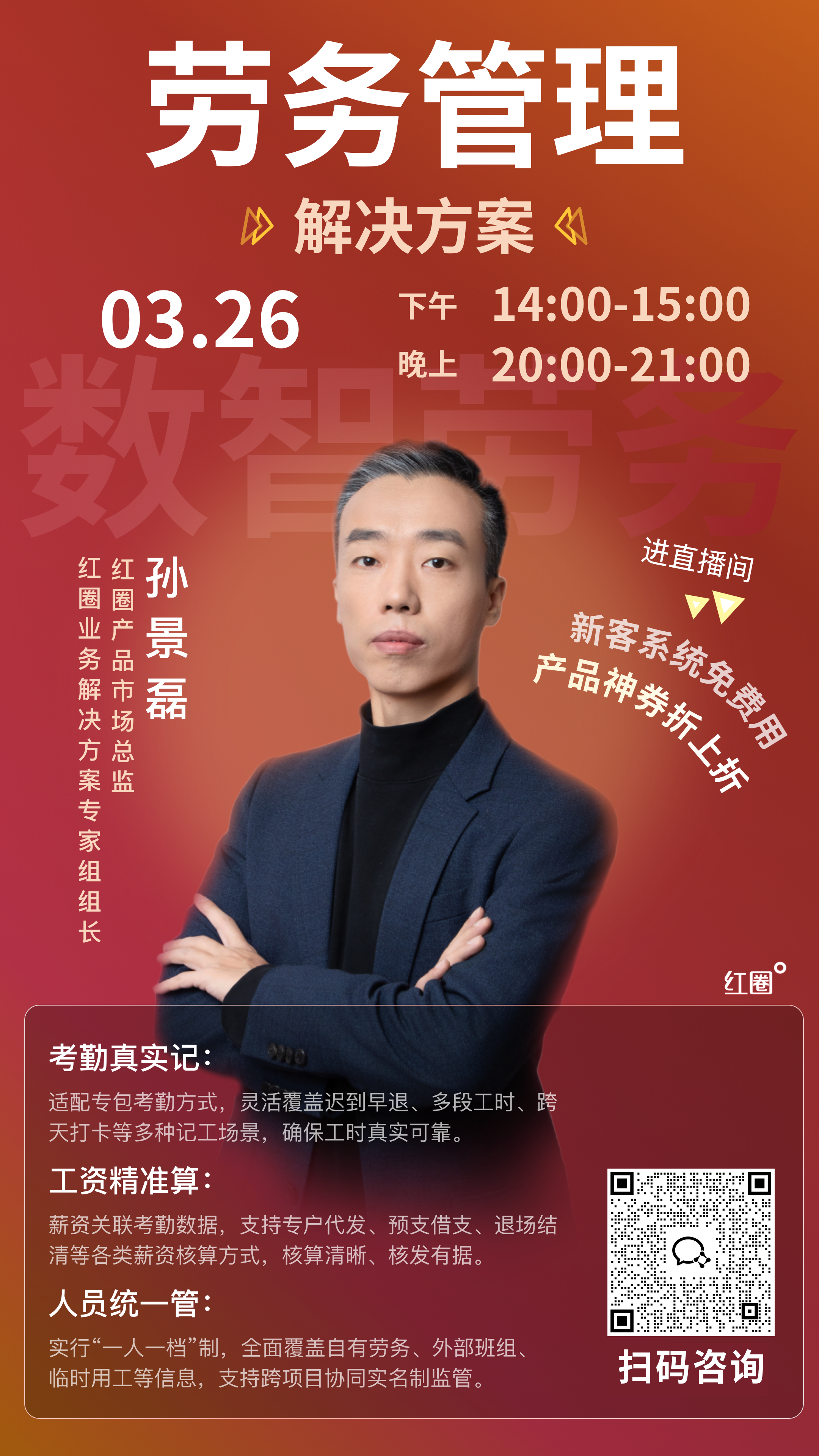 直播預告丨勞務管理又出新難題?03.26紅圈“數智勞務管理”直播第二彈,這次千萬別錯過!