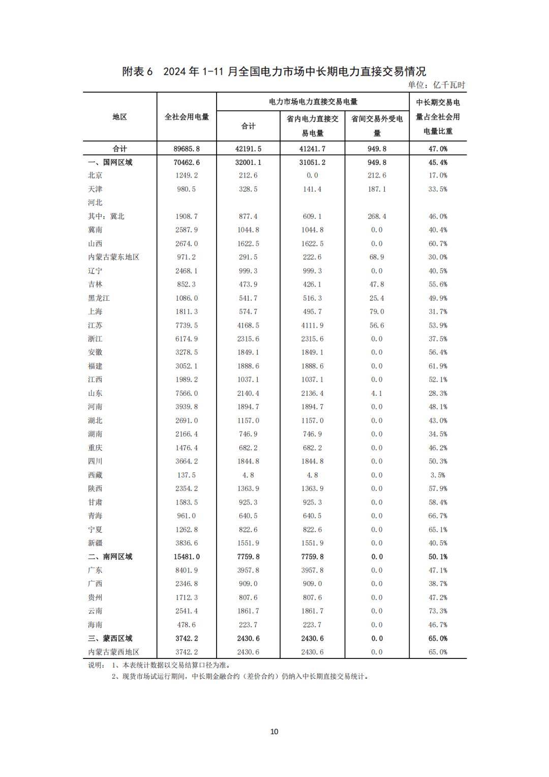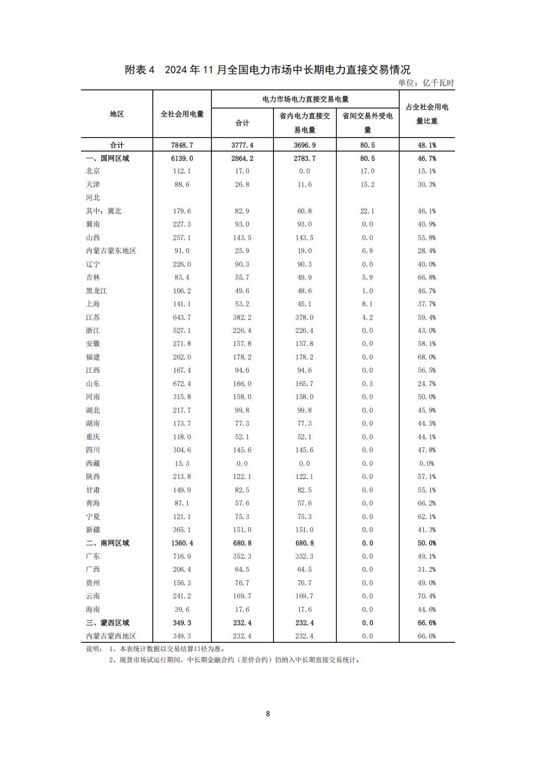 全國電力市場中長期電力直接交易中,1-11月,全國電力市場中長期電力直接交易電量合計為42191.5億千瓦時,同比增長5.7%。其中,省內(nèi)電力直接交易(含綠電、電網(wǎng)代購)電量合計為41241.7億千瓦時,省間電力直接交易(外受)電量合計為949.8億千瓦時。