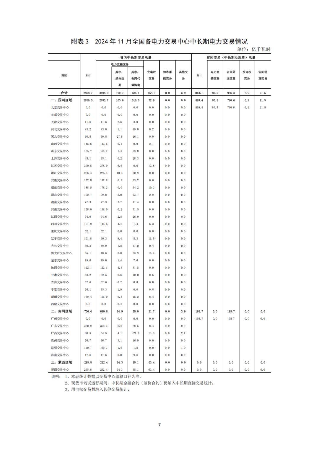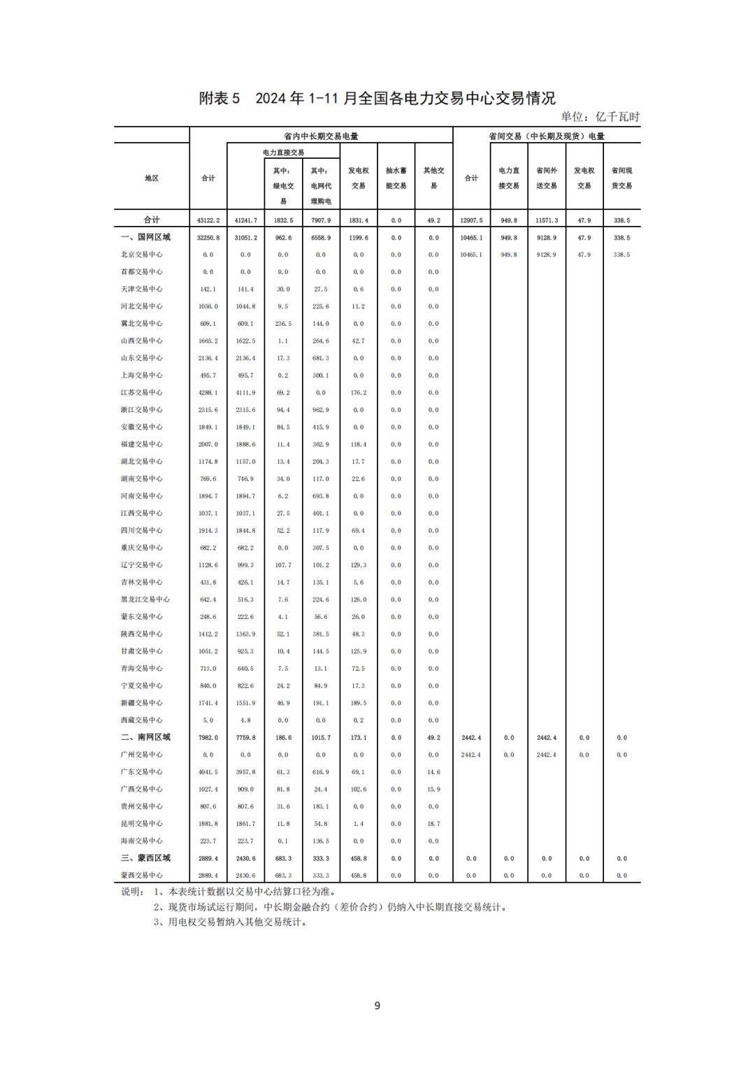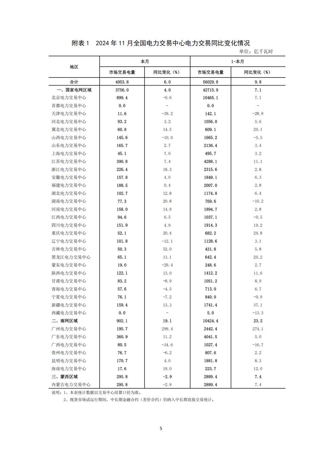 分區(qū)域來看,1-11月,國家電網(wǎng)區(qū)域各電力交易中心累計組織完成市場交易電量42715.9億千瓦時,同比增長7.1%,其中北京電力交易中心組織完成省間交易電量合計為10465.1億千瓦時;南方電網(wǎng)區(qū)域各電力交易中心累計組織完成市場交易電量10424.4億千瓦時,同比增長23.2%,其中廣州電力交易中心組織完成省間交易電量合計為2442.4億千瓦時;內(nèi)蒙古電力交易中心累計組織完成市場交易電量2889.4億千瓦時,同比增長7.4%。