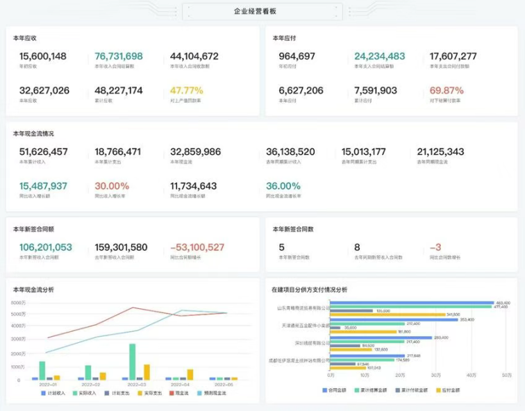 更關鍵的是 “數據穿透” 能力:管理層可以從總部層面,穿透到分子公司,再下鉆到具體項目,實時查看進度、成本、資金等維度的動態 —— 比如總部能實時掌握所有項目的現金流情況,分子公司能監控下轄項目的分供方付款進度,項目端能追溯每一筆成本的來源。這種 “總部 - 分子公司 - 項目” 三級透明化管理,不僅滿足了央企國企對 “運營透明度”“集團化管控” 的嚴格要求,還能為審計合規、重大決策提供可信的數據依據,完美契合 “強總部、精項目” 的管理導向。