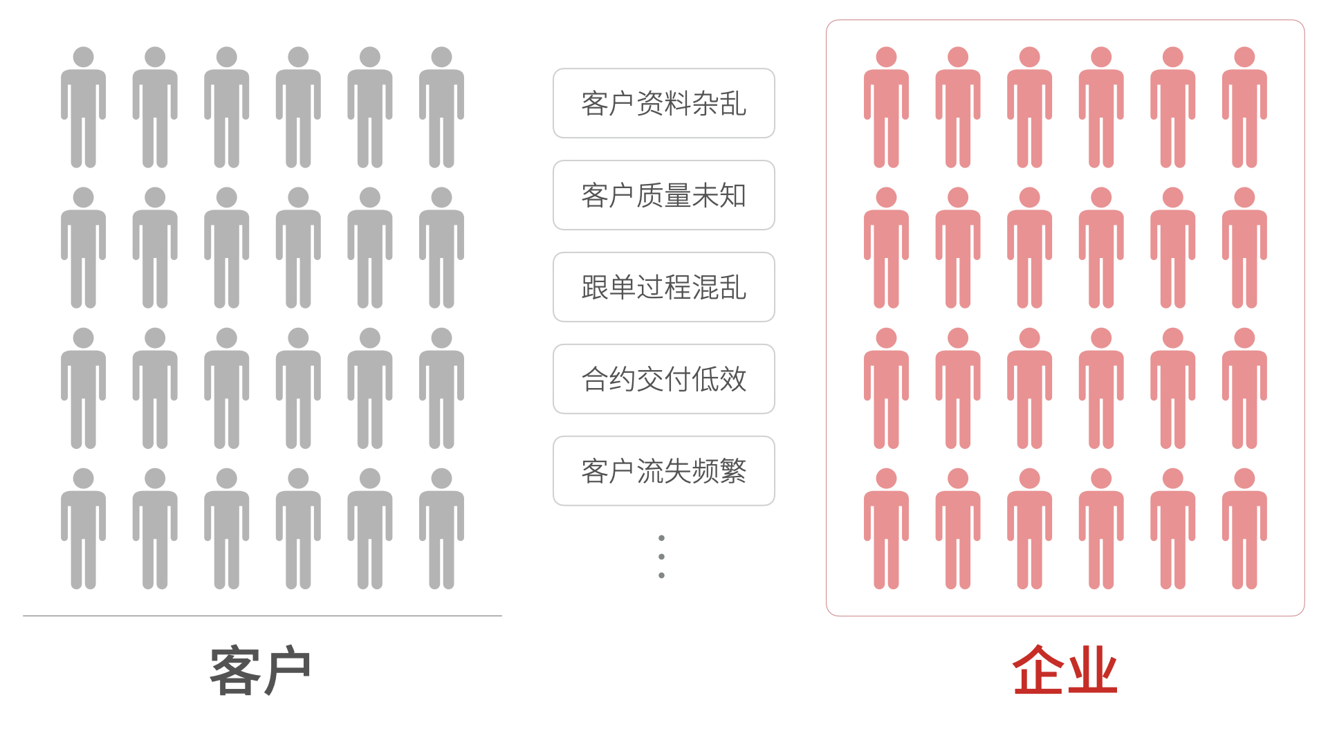 但是對(duì)于絕大多數(shù)企業(yè)而言,他們面對(duì)的是數(shù)以萬(wàn)記的企業(yè)或個(gè)人客戶,如果沒(méi)有系統(tǒng)的輔助,往往會(huì)導(dǎo)致客戶資料雜亂、客戶質(zhì)量未知、跟單過(guò)程混亂、合約交付低效、客戶流失頻繁等企業(yè)經(jīng)營(yíng)困境,自然無(wú)法實(shí)現(xiàn)收入預(yù)期的最大化。而且企業(yè)內(nèi)部還有分屬不同部門的千百名員工,一個(gè)客戶從線索到回款的全生命流程往往需要各部門數(shù)名員工的協(xié)同工作,如果沒(méi)有系統(tǒng)化的流程管理和數(shù)字化的決策輔助,也無(wú)法提高收入預(yù)期的置信度。