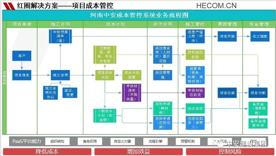 中安集團(tuán)深知:通過成本管理信息化的全覆蓋,能夠提升集團(tuán)公司總部型機(jī)關(guān)的管理能力和服務(wù)水平,繼而培養(yǎng)了團(tuán)隊(duì)的成本管理意識,各項(xiàng)目真正做到有目標(biāo)、有過程、保結(jié)果。