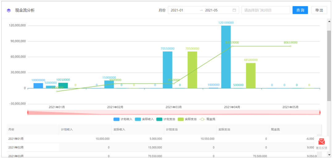 ● 紅圈系統(tǒng)自動(dòng)生成動(dòng)態(tài)利潤(rùn)金額、合同金額、回款金額、開票金額、支付金額、成本分析等可視化報(bào)表,管理層可實(shí)時(shí)調(diào)取數(shù)據(jù),快速查看每個(gè)項(xiàng)目的經(jīng)營(yíng)情況,真正幫助管理層做到“一鍵洞察全局”,心中有數(shù)!